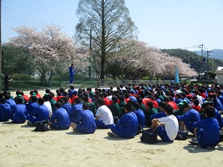 あいにくの雨ですが、満開の桜に囲まれて入学式がとりおこなわれました。