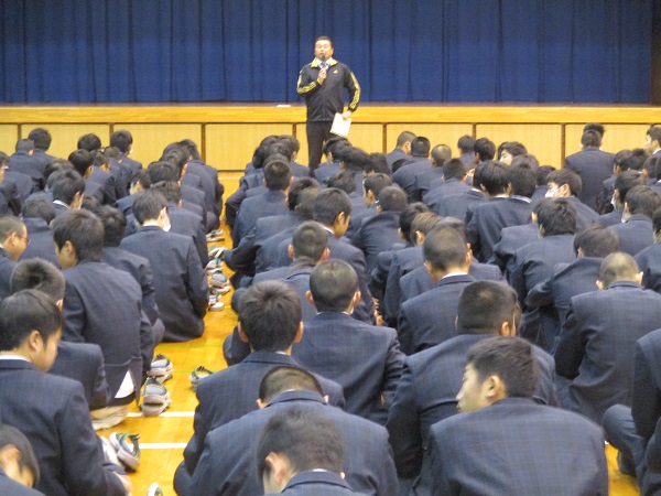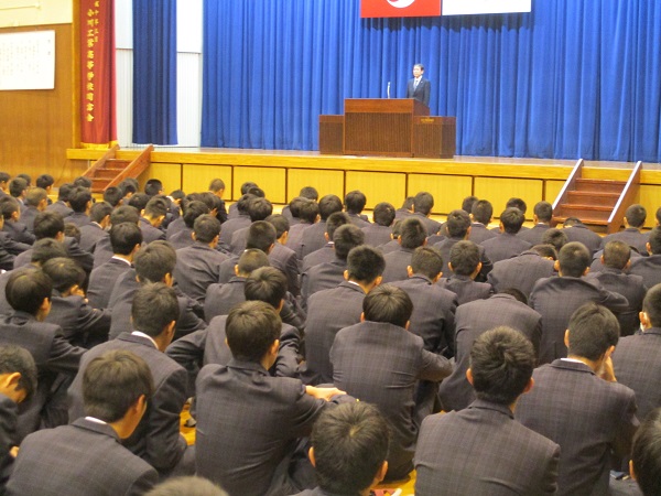 午前中は大掃除や課題考査、1年生は修学旅行前日ということで事前指導が行われており、各クラス代表の生徒が意気込みを話していました。