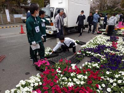 岡岳公園にて、今月30、31日に開催されるフラワーフェスタの準備ボランティアに、本校から大勢の生徒が参加してくれています。