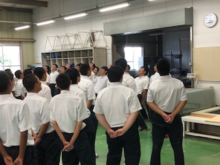 9月29日(土)体育大会が予定されています。今日は団発会式が各科で行われました。当初は外で行う予定でしたが、台風による影響で雨が降ってきたので体育館等に分かれて行いました。これから本校は、3年生の就職試験と並行し、体育大会へと進んでいきます。