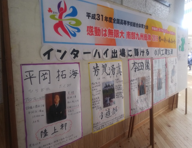 【生徒会】北辰祭で南部九州総体のPR活動を行いました! 投稿日時 : 2018/12/17 職員 次年度、南部九州地区で行われる全国高校総体の広報活動を兼ねて、本校からインターハイを目指す生徒の紹介を行いました。小川から全国への扉を開いてほしいと思います。応援よろしくお願いします。