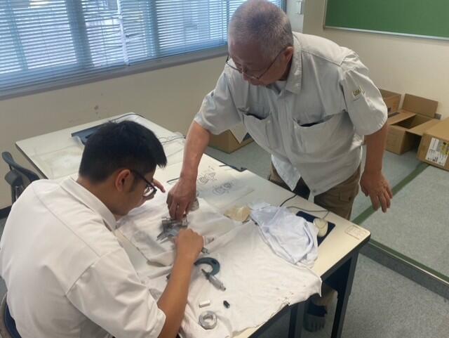 若年技能者人材育成支援等事業の一環として、ものづくりマイスターの派遣による実技指導(機械検査作業)を受けました。今回は機械検査作業における器具の知識と適切な使用方法を学び、正確な測定ができるように技術を習得することを目的としています。講師の先生の指導のもと、3年生4人が実技指導を受けました。講習は6月4日、6日、11日、13日、17日の5日間にわたって実施されます。国家資格でもある機械検査3級技能士を目指して頑張りましょう!