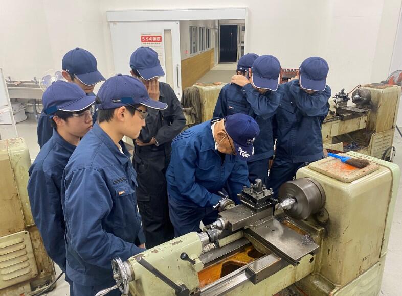 普通旋盤作業では8名が受講し、1日3時間×10日間の指導を受けた。機械検査作業では16名が受講し、1日3時間×5日間の講習を実施した。また、機械検査2級部門では1名が受講し、1日3時間×8日間の日程で指導を行っていただいた。