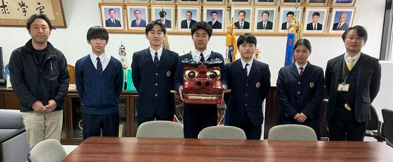 【建築科】獅子頭の引き渡し 投稿日時 : 01/29 学校サイト管理者 本校建築科3年生5名が、地域文化の継承と工業技術の融合を図り、宇土市の伝統芸能に貢献する獅子頭を制作しました。 この獅子頭は、今後、鶴城中学校で活用される予定です。