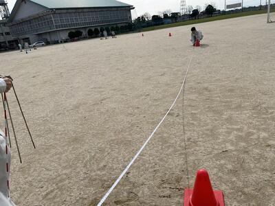 コーナーを設置するために、いくつかの簡単な計算を行い、そのデータを用いてグラウンドに設置をしました。