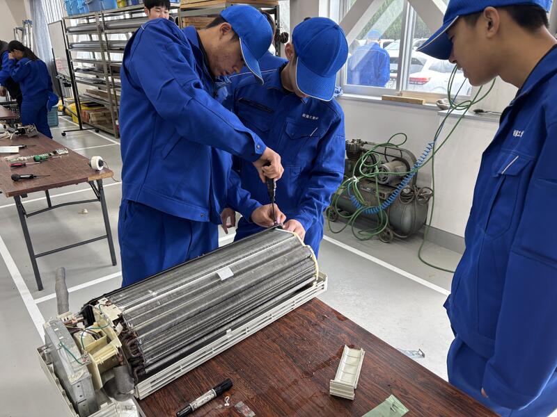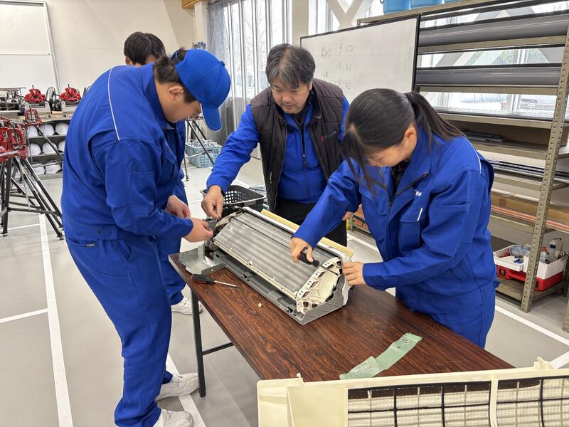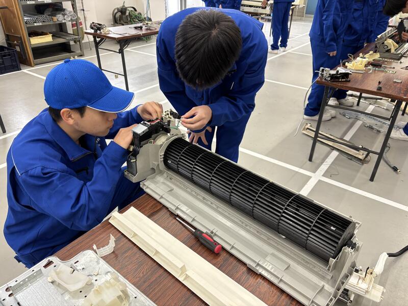 今回はエアコンの室内機の分解・組み立てを班に分かれて作業しました。