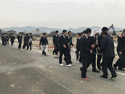小雨の中、学校から小川駅までみんなで歩きながら、ゴミ拾いをしました。