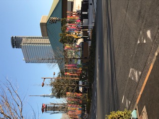 ホテル前は両国国技館です。 スカイツリーも見えます。浅草に行く準備をします。