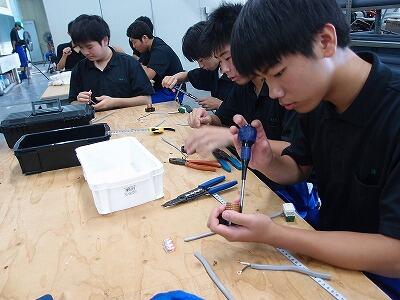 1年生の実習では「配管・屋内配線・溶接・パソコン・測量」の5種類の実習を行います。