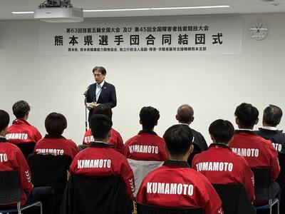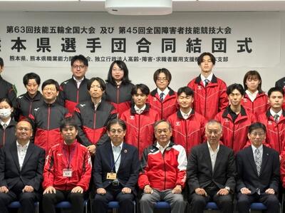 ものづくりの技術を競う【技能五輪】と障害者が仕事の技術を競う【アビリンピック】の全国大会が10月に開かれるのを前に熊本県防災センターで選手団の合同結団式が行われました。
