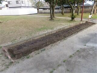 (ボランティア委員会)「人権の花」の花壇に花の種まき!