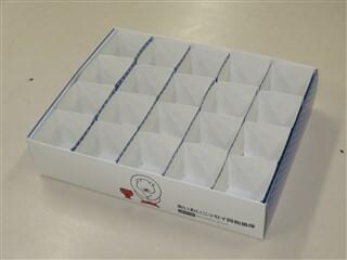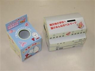 作成したものは、各教室に設置する小さめの収集箱15箱、事務室や職員室に設置する大きめの収集箱2箱、そして会社ごとにベルマークを仕分けする箱1セットです。