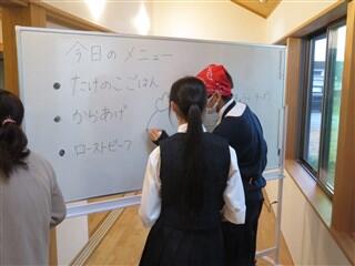 料理を容器についだり、容器を家庭ごとに段ボール箱に詰めたり、唐揚げを揚げたり、ホワイトボードにメニューを書いたり、受付をしたり、会場を案内したり、料理を車や自宅まで届けたりと、様々な活動を任せていただきました。