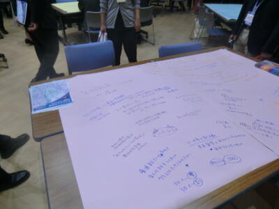 あり方検討会における議論の状況等の説明を受けた後に、少人数のテーブルごとに、メンバーチェンジをしながら、「10年後、この地域にあって欲しい高校の姿」をテーマに、参加された方同士でざっくばらんに語り合いましたが、小国高校存続に向けたさまざまなアイデアが各テーブルから活発に生まれていました。