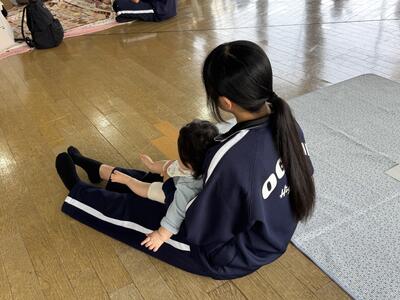 10月25日(金)、2年2組の「保育基礎」の授業の一環として、校外学習「赤ちゃんとのふれあい交流会」を開催しました。生徒たちは、絵本の読み聞かせや授業で製作したおもちゃで遊びながら、赤ちゃんやお母さんたちと積極的に交流しました。また、お子さんの名前の由来を尋ねるなどして、楽しくコミュニケーションをとることができました。