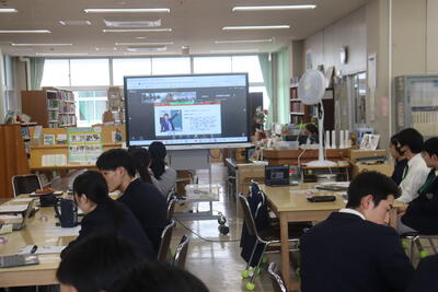 11月1日(金)、認定NPO法人カタリバが主催する学校横断型探究プロジェクトのオンライン交流授業に2年生が参加しました。岩手県立前沢高等学校、第一学院高等学校横浜キャンパス、鹿児島県立沖永良部高等学校と小国高校の生徒、総勢121名が参加し、ブレイクアウトルームで4〜5人のグループに別れて、大学生や社会人のファシリテーターの元で、中間報告を兼ねたオンラインプレゼンテーションと意見交換を行いました。通常はグループ活動をしていますが、今回は、1人でのオンラインプレゼンテーションだったので、緊張した生徒も多かったようですが、スライドを使ってうまく発表することができました。