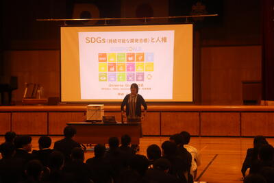10月25日(金)に、Universe Quest代表の神田みゆき様を講師にお迎えして、SDGs(持続可能な開発目標)とジェンダー平等をテーマとした人権教育講演会を行いました。