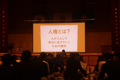 10月15日(火)に3年2組の生徒を対象に、部落解放同盟白水支部の中川弘幸支部長をお招きして、人権教育講話を実施しました。