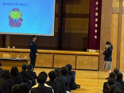 10月8日(火)全校朝会で、9日から産休に入る養護教諭の田中先生の挨拶と、後任の那須先生の紹介がありました。