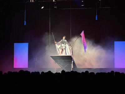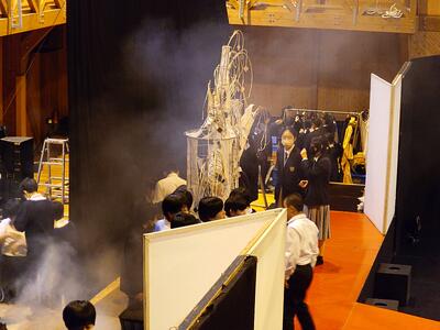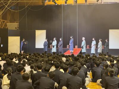 今年度は、日本芸術教育振興会の皆さんによる 「TOKYOスーパーイリュージョン」 を鑑賞しました。光と音を駆使した迫力あるステージは圧巻で、マジックやイリュージョンのほか、心理学ショー、ピエロのパフォーマンス、科学実験など多彩な内容が次々に展開されました。中でも、生徒がステージに招かれて出演者と一緒にパフォーマンスを体験する場面では、会場が一気に盛り上がり、驚きと歓声、そして笑顔があふれ、皆が芸術の楽しさを体感していました。