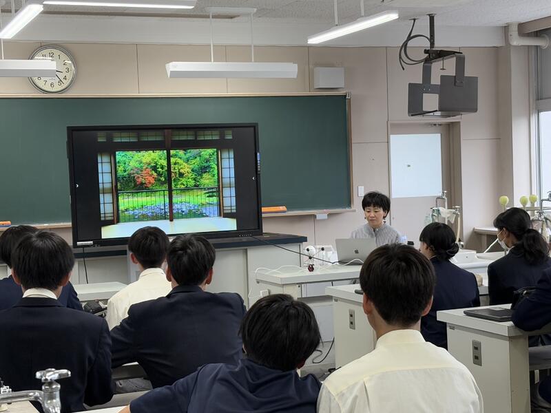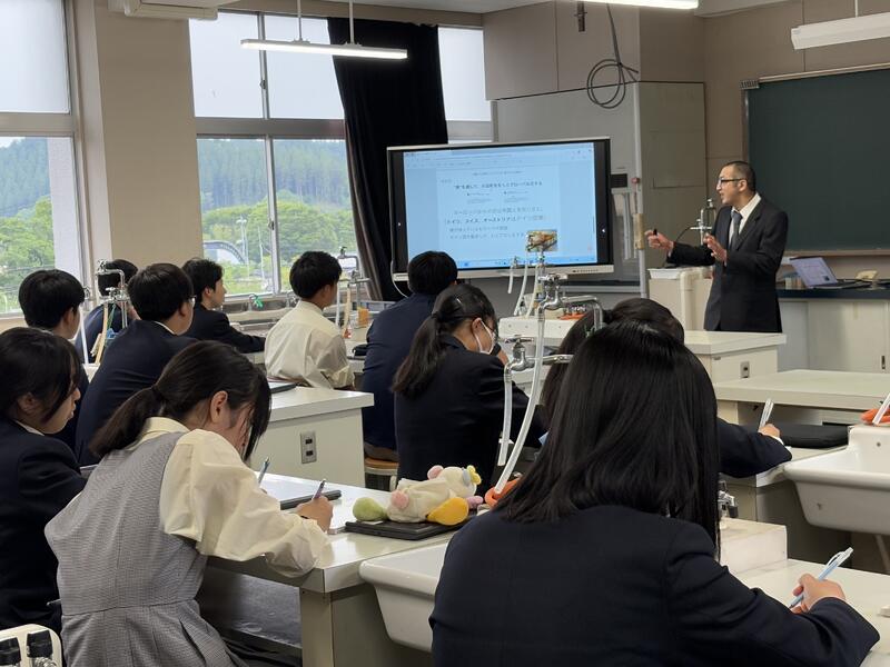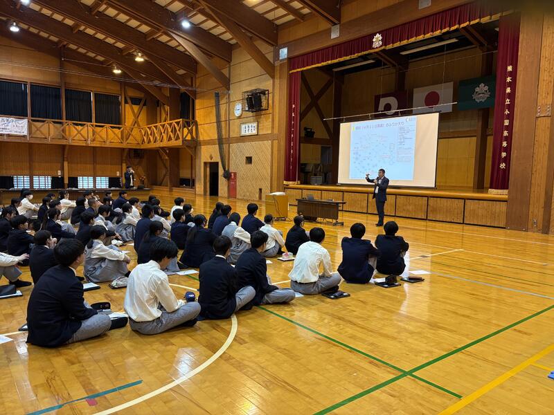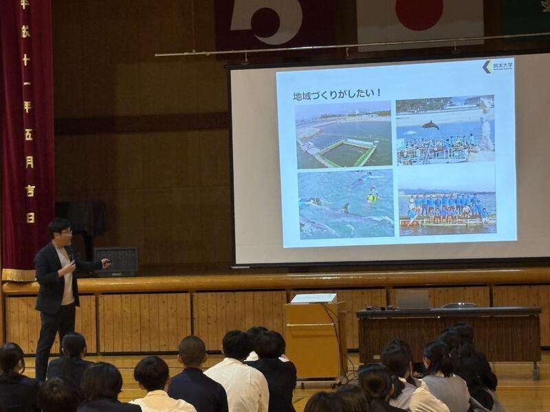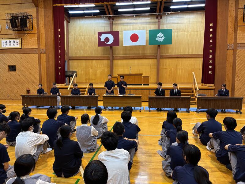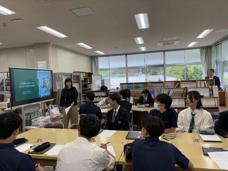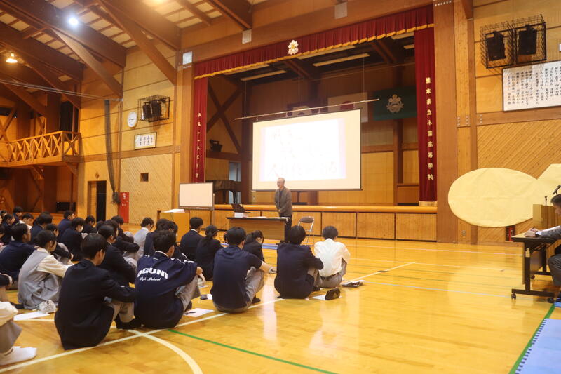 5月16日(金)に熊本大学から4名、小国町の地域の方4名を招いて、本校の1、2年生を対象とした連携講義が行われました。