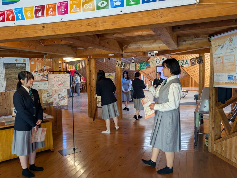 当日は、「小国郷のグローバル化」をテーマに、地元の観光情報や日々の探究活動の成果を英語で説明したり、大学生とディスカッションを行ったりしました。