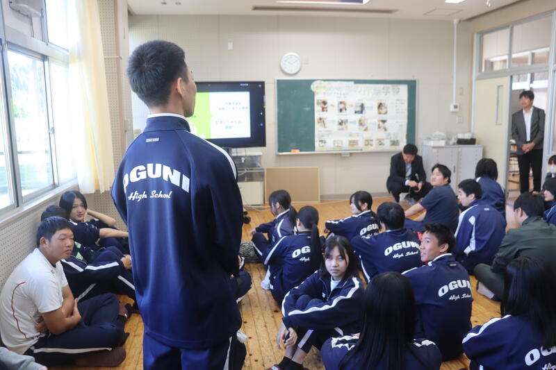 「今回の講義を聞き、地方創生に重要なのはまず我々町民、高校生が地元を愛することが重要で私たちがやってきたOGUNI-GIFT、KIYORA-GIFTの取り組みは最先端なことをやっているのだと思いました。」