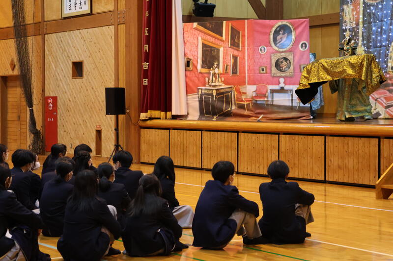 11月12日(水)、本校体育館にて、小国中学校・南小国中学校の生徒の皆さんと合同で芸術鑑賞会を開催しました。例年行われているこの行事は、地域の中学生・高校生が一堂に会し、芸術を通して感性を磨くとともに、交流を深めることを目的としています。