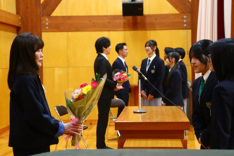 小さな学校だからこそ、授業はもちろん、行事や日常生活の中でも多くの場面でお世話になった先生方との別れは、在校生・教職員ともに寂しさを感じるひとときとなりました。式後は、卒業生や保護者の方も多数来校され、繋がりの深さを感じさせられました。