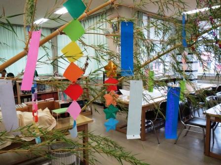 本日から図書館で七夕まつりが始まりました。朝から生徒一人ひとりに短冊を配り、それぞれ思いを込めて短冊に願いや目標を書いていました。今日はあいにくの天気でしたが、本番の7月7日は晴れるといいですね。