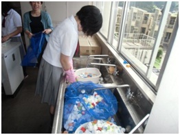 ペットボトルキャップの回収及び洗浄作業です。