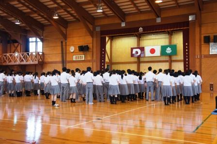 今日は1学期の最終日、終業式でした。学校を隅から隅まで掃除後、体育館に集合して、大会に臨むホッケー部や吹奏楽部の推戴式、終業式、学友団活動の集合、ケーブルテレビの撮影、インターンシップの激励会と、行事が盛りだくさんでした。