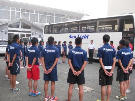 山梨県で開催される全国高等学校ホッケー選手権大会に、小国高校ホッケー部男女の両チームが出場します。保護者の見送りの中、会場に向けて出発しました。