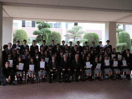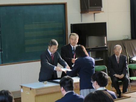 3年間でボランティアをがんばってきた生徒に表彰状が贈られました