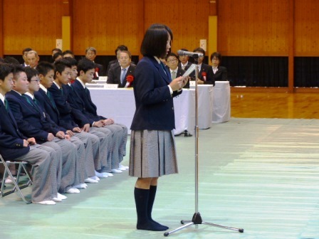 選手宣誓は、女子バドミントン部主将の福嶌阿佑美さんが