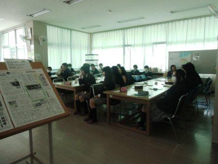 現代文の授業が図書館にて行われました。ビデオ鑑賞中です。みんな真剣に見入っています!