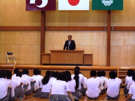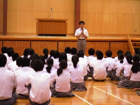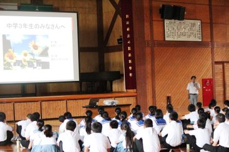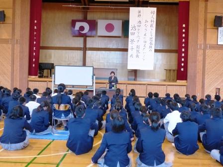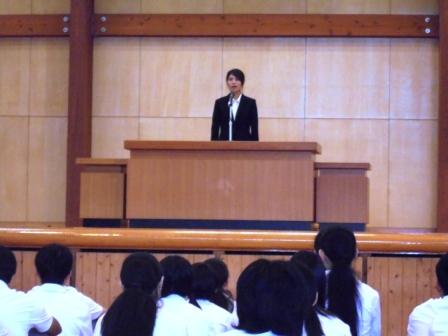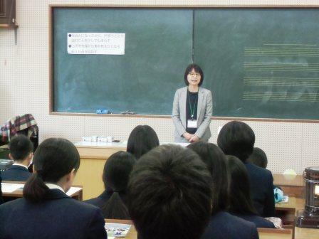 講話では、「自分の身体を知る」大切さや、10代の妊娠・人工妊娠中絶の実態、性感染症、男女交際や恋愛におけるマナー、LGBT等、思春期における様々な課題を分かりやすくお話していただきました。生徒は自分のことに置き換えて真剣に聞き入り、自分はどうすべきかを考える良い機会になりました。これからたくさんの人に出会う中で、どういう選択をし生きていくのか、今日学んだことや考えたことを忘れずにいて欲しいと思います。