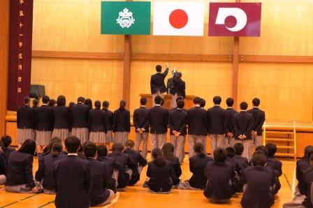 その後、始業式が行われました。校長訓話では「何事にも失敗を恐れずやってみる。日々の当たり前の事を大切にやる。それが自分のレベルアップにつながる」と話をされ、高校を引っ張っていく上級生達は、真剣な面持ちで話を聞いていました。