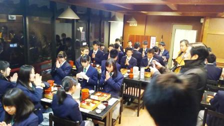 浅草に移動し夕食の様子です。早いもので修学旅行最後の夕食です。