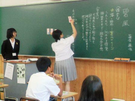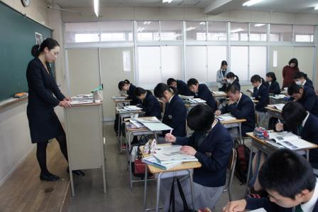 学年末考査まで1週間となった今日、1年1組で英語の研究授業が行われました!小国高校の職員だけでなく、小国中学校、南小国中学校からも見学に来られ、緊張感が漂う1時間だったように思います。そんな雰囲気の中ですが、1組のみんなは、一人ひとりが真剣に、本当に一生懸命取り組んでいました!「できるだけたくさん英語を使う」という目標の一つを達成するために、ペアで会話をしたり、大きな声で音読をし合ったり、積極的に授業に参加していました。久しぶりに会う中学校の先生に教えてもらう姿も見られ、緊張の中に温かい雰囲気も感じられました。1組のみなさんには、今日の姿勢を大切にしながら、学年最後のテストに向けてベストを尽くしてほしいです!!