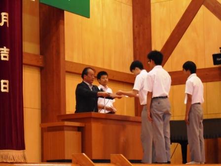 また、表彰式では吹奏楽コンクール、ピアノコンクールで優秀な成績を収めた生徒への表彰が行われました。