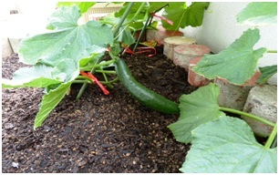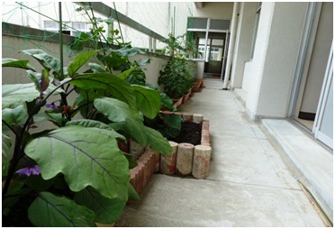 5月中旬に植えた苗がすごい勢いで成長しており、すでに背丈は1m超え、中には実をつけているものもあります