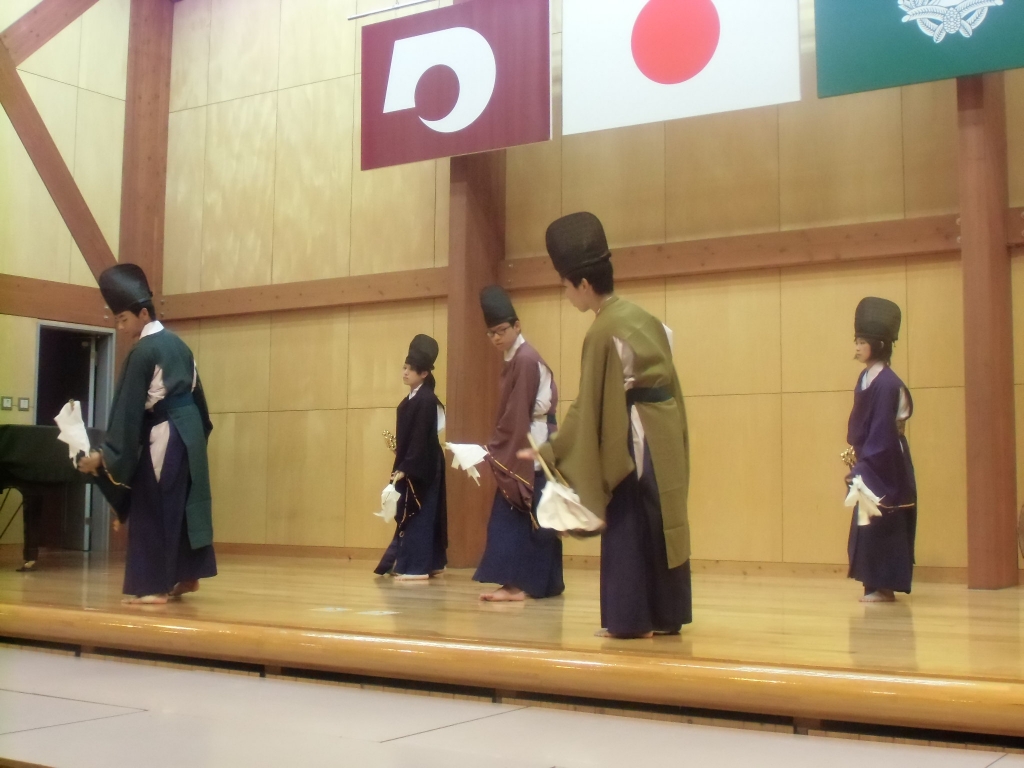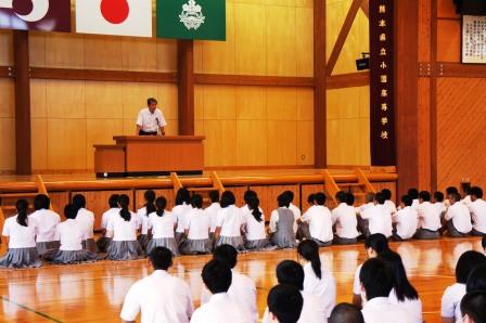今日の午後から本校体育館において、中高一貫三校合同芸術鑑賞会がありました。毎年この時期に、小国中、南小国中、本校の3校合同で演劇や伝統文化等の芸術鑑賞会を行っています。