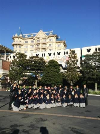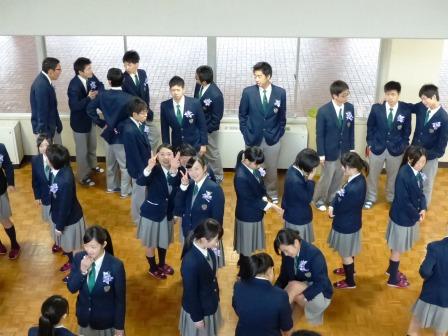 全校生徒・全職員が1つの大きな輪になって校歌斉唱を行い