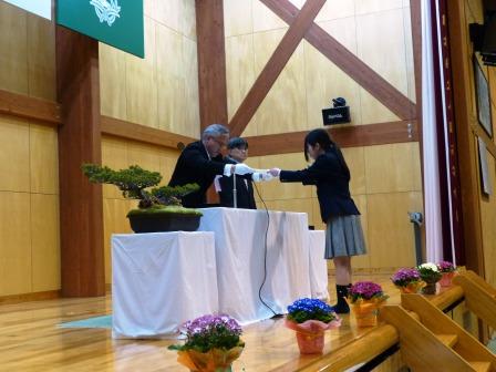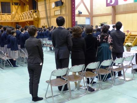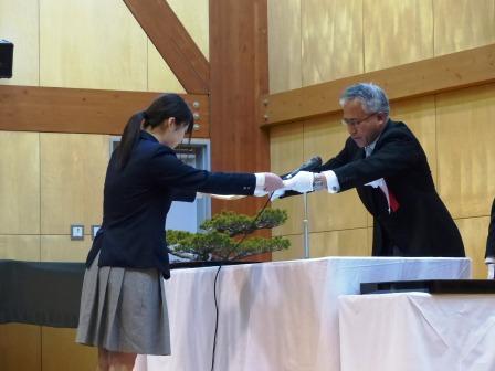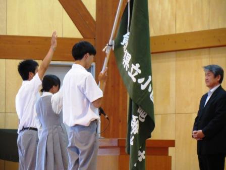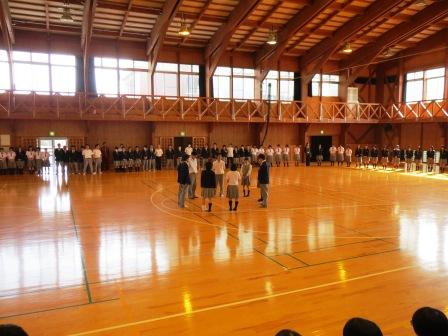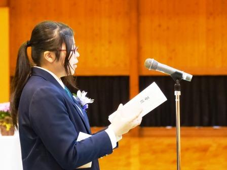 在校生代表の生徒の「我らは誇る小国高 友よ志を尚くせん」の掛け声のあとに