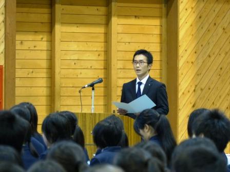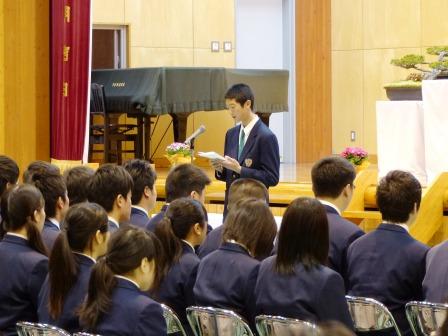 生徒会副会長のあいさつでは「目標を立てることの大切さ」についてユーモアを交えて語られ
