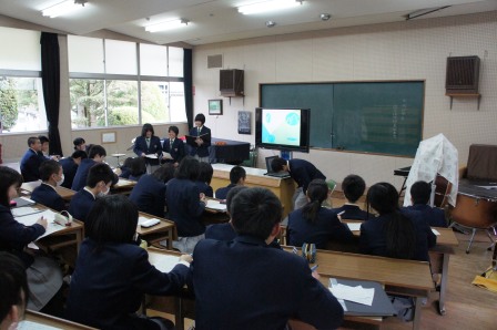 今日は、1年生が小論文の学習をしました。「作文」と「小論文」の違いってなんだろう?相手を納得させるために、自分の意見をどう伝えたらいいんだろう?と、生徒は戸惑っていました。しかし、山本先生の丁寧な指導を受け、皆で意見を出しあっていると、「小論文って、そんなに難しいものではないかも・・・」と思えるようになったようです。