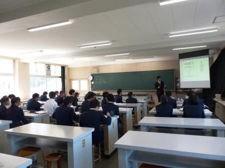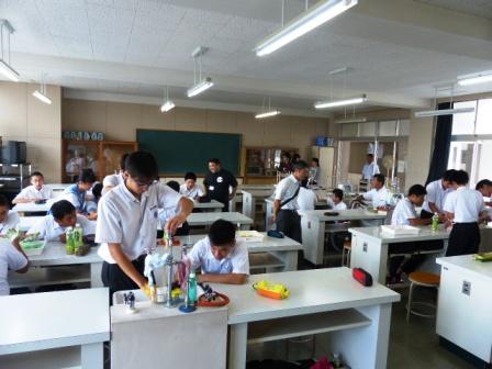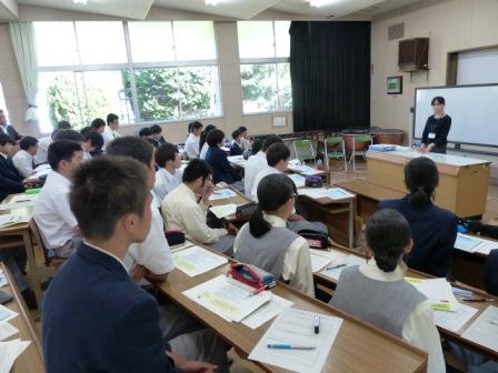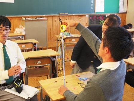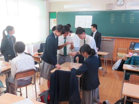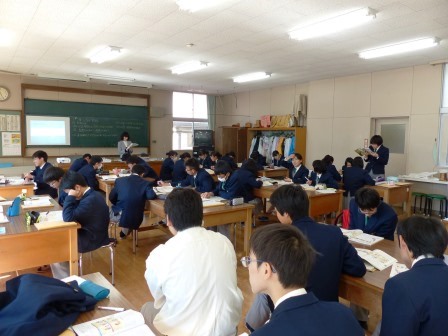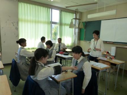 昨日(5日)は、田中先生の物理基礎の研究授業(2-1)と、原田先生の家庭基礎の研究授業(1-1)がありました。多くの先生が参観され、また、中学校から参観に来た先生もいらっしゃり、生徒たちは多少緊張した様子でもありました