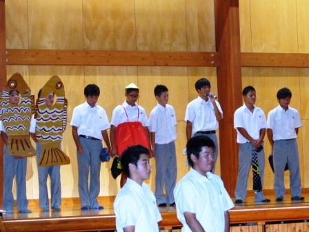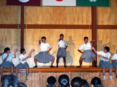 まずは体育館で、各クラスの映像発表やステージ発表が行われました