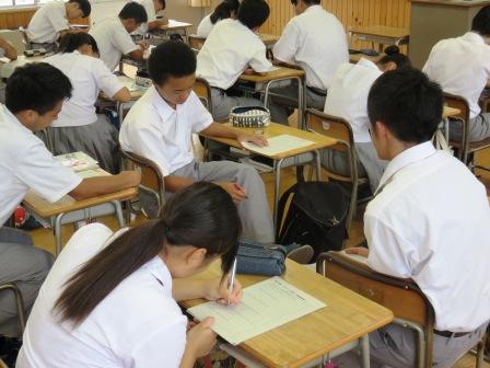 生徒たちは、授業中の復習の時間に質問したり、隙間時間などに友だち同士で問題を出し合ったりして、頑張っています最後まであきらめずに精一杯取り組み、学習の成果を発揮してほしいと思います。